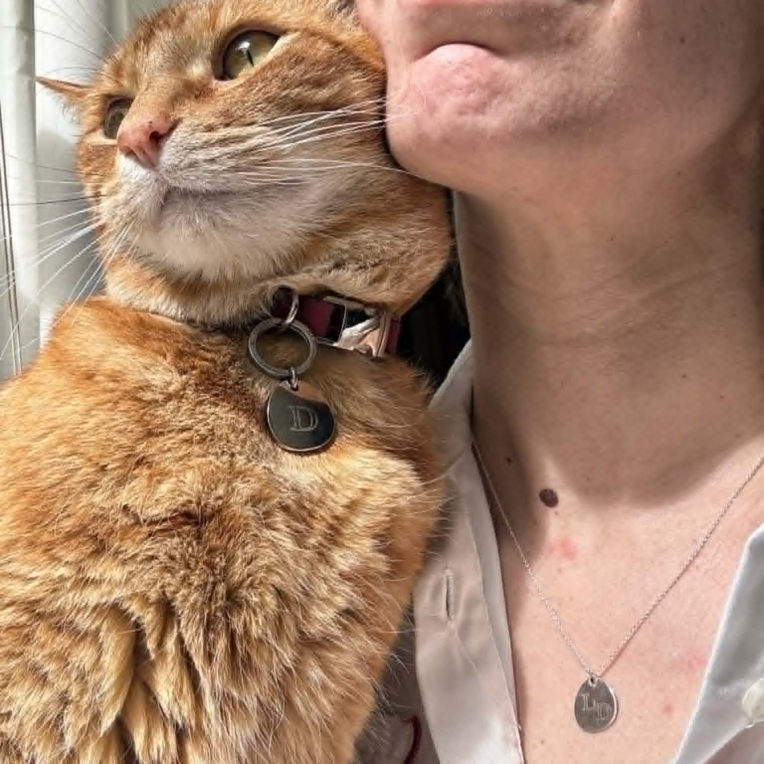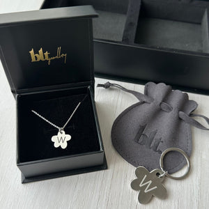 This gift pack includes a tag for your pet (small or large) and a matching necklace for you with THEIR initial on it. In a beautiful box set, perfect for gifting...to others or yourself!